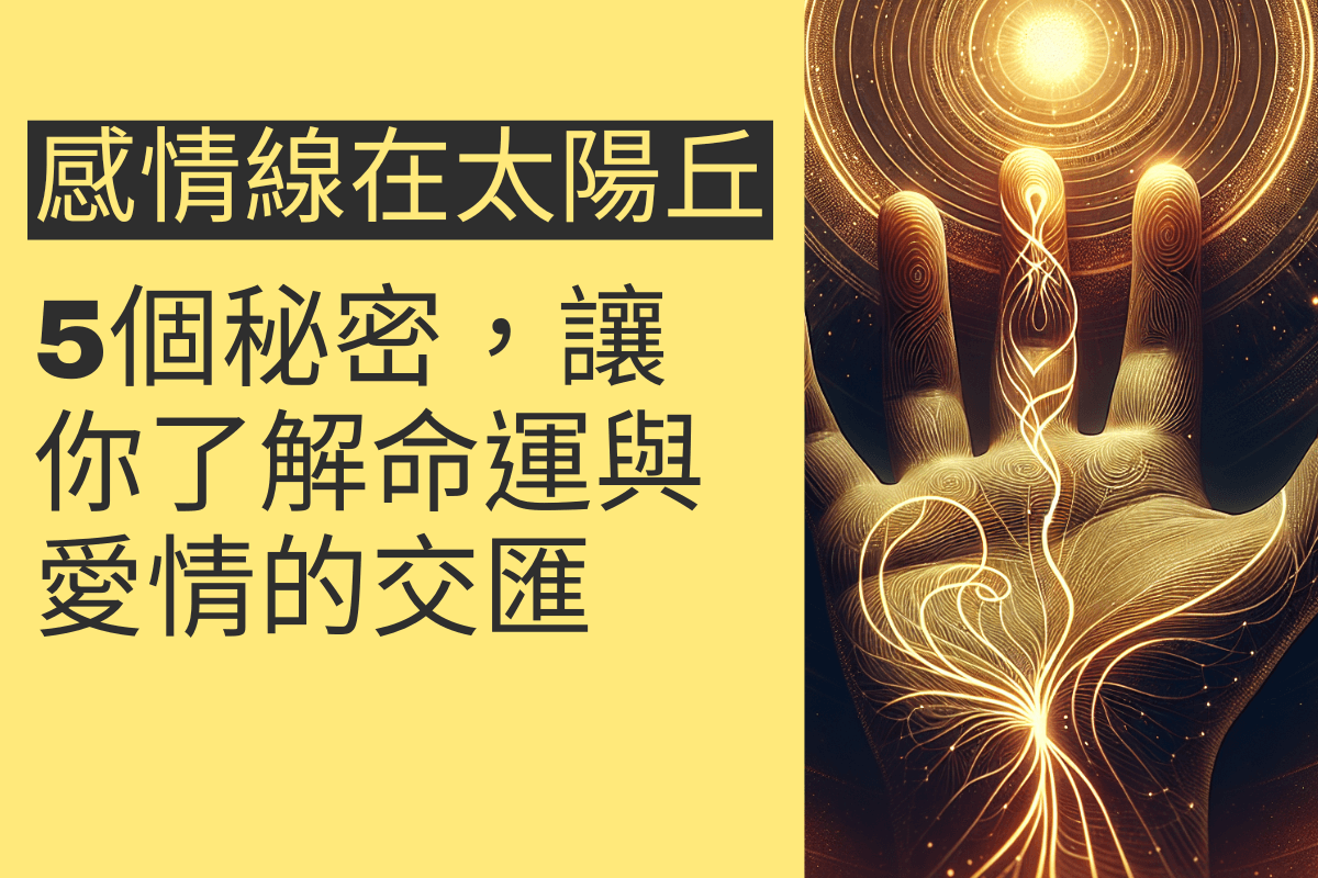 在手相學中,感情線是反映一個人情感和人際關係的重要標誌,而當感情線止於太陽丘時,常被認為對個人的愛情運勢有特別的影響。太陽丘位於無名指下方,與名望和成功有關,當感情線在此終止,意味著什麼呢?本文將深入探討這一手相特徵,從歷史背景到現代解讀,為您揭開感情線止於太陽丘的神秘面紗。我們將探討這一特徵的意義,如何影響個人的愛情運,以及如何藉由了解手相來改善人際關係。無論您是對手相學感興趣,還是希望更好地理解自己的愛情運勢,這篇文章都將為您提供寶貴的見解。